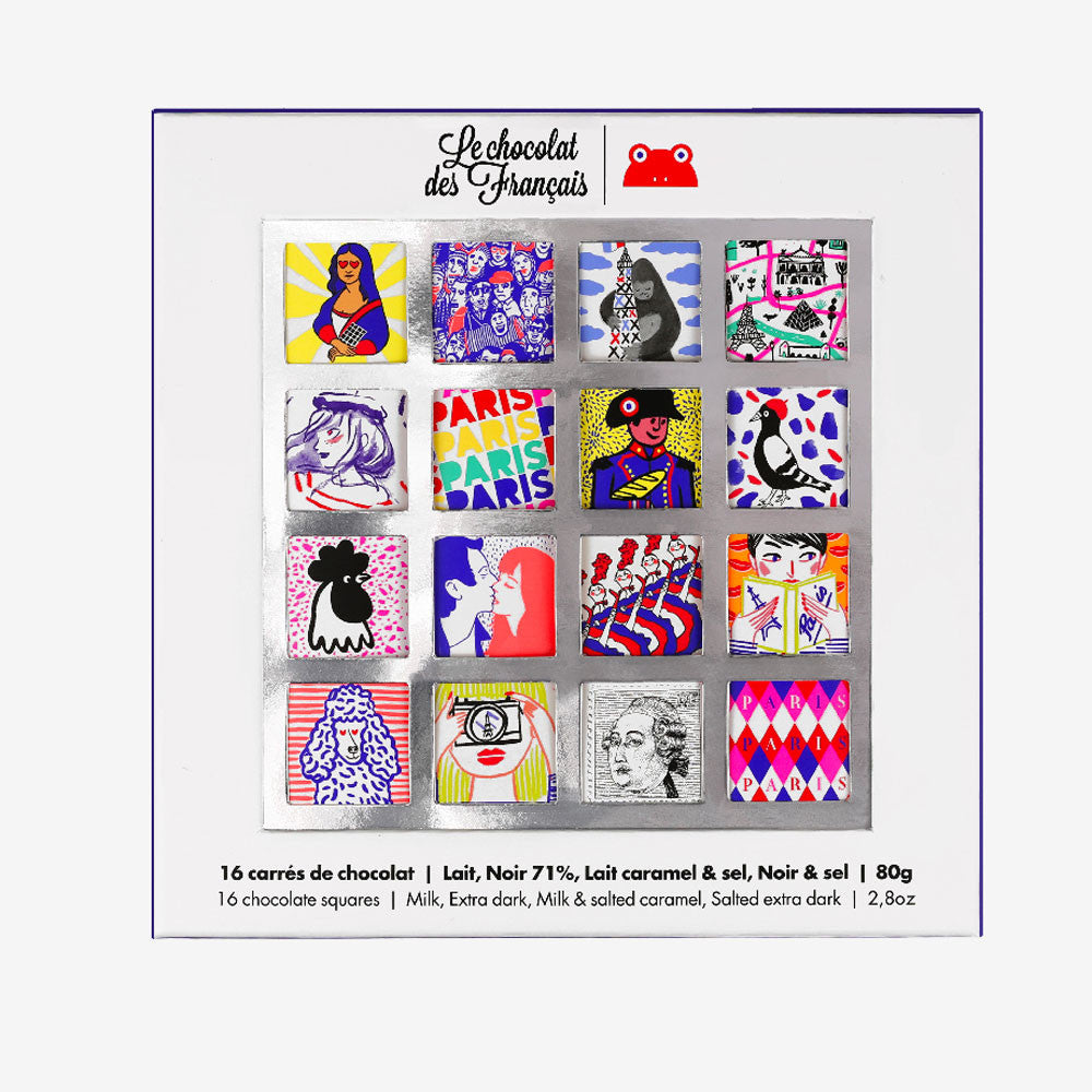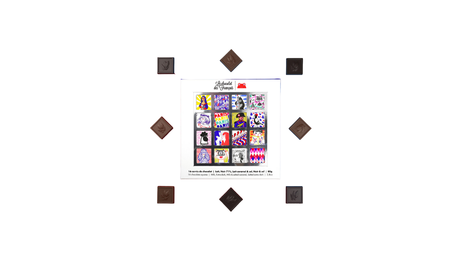 This box of 16 gourmet chocolates is a pure nod to the city of Paris. Treat yourself with 4 different recipes: soft milk, dark 71%, milk caramel and dark & salt. Perfect to accompany your coffee breaks!