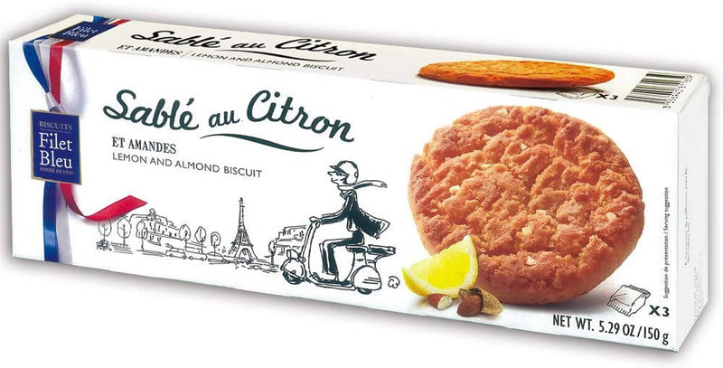 Filet Bleu Sablé au Citron lemon and almond shortbread with Almond made in France. Delicious cookies for a snack or tea-time.